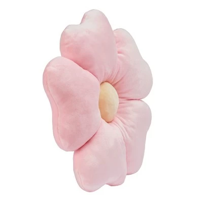 Add a little flower power to your child’s room with this pretty decorative plush flower throw pillow. It is made in a soft pink velour with a sunshine yellow center. It is approximately 13” in diameter and has five petals that are 5” X 7” each. It makes the perfect addition to any nursery or child’s room and is a baby-safe plush toy too.
