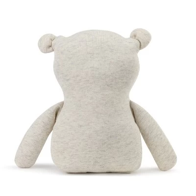 - Made from light gray poly fabric, 17″ Girl Bear has the feel of a favorite cozy sweatshirt and is surface washable. Designed by artist Lori Siebert.