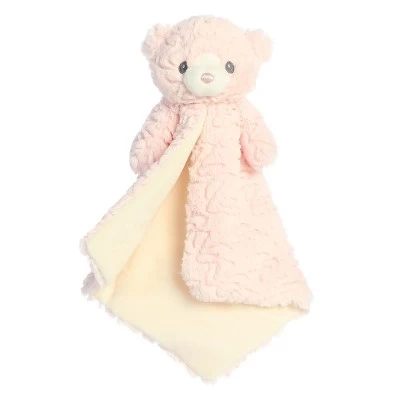 The Huggy Collection features unique and super soft wavy textured fabric. This Huggy Bear Luvster is part blanket and part bear who are perfect for cozy snuggles and naps. This Luvster is a light pink color with a cream interior. With a hand sewn satin nose and dangly arms this bear was made to give the best bear hugs.