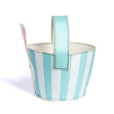 - Get your kids excited for Easter with this adorable basket featuring a cute bunny and striped design.
