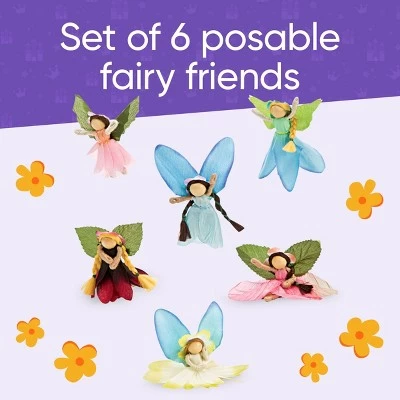 - Posable, cotton-wrapped wire dolls feature colorful, nature-inspired outfits and wings