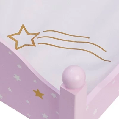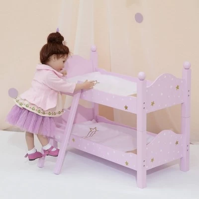 - PRINCESS DOLL BUNK BED: Features a fun pink design with gold and white stars, headboards, footboards, and a ladder connecting the two bunks to bring your child’s dolls a good night’s sleep