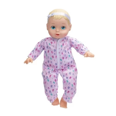 Cuddle and care for your baby with the included bottle, pacifier and rattle. Baby comes with removable pajama onesie and headband. Push baby’s tummy to activate 25 sounds – baby giggles, cries, hiccups, sneezes, toots and more!