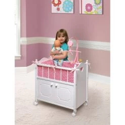 Badger Basket Cabinet Doll Crib With Chevron Bedding And Free Personalization Kit – White/Pink