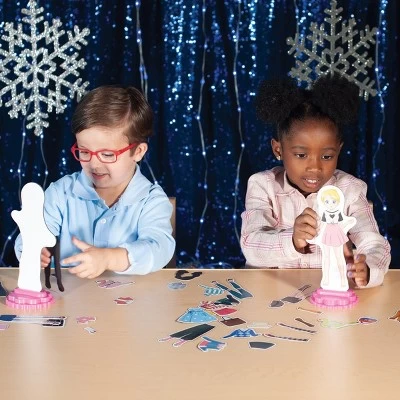 Any young fashionista would love to show their style with the Magnetic Fashion – 57 Pcs Playset! New looks and lots of new magnetic dresses that can be combined to create the perfect outfit. Play with Anna and Laura, the cut-out dolls to create countless new stories and have fun. The outfits can be split to experiment with even more combinations using the 57 magnetic pieces in the pack. Playset includes: 2 magnetic dress-up dolls, 2 stand-up supports and 57 magnetic clothing pieces.